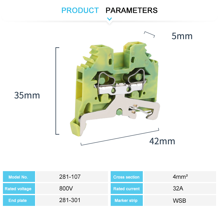 bloque de terminales de conexión de jaula de resorte, terminal de cable con resorte |