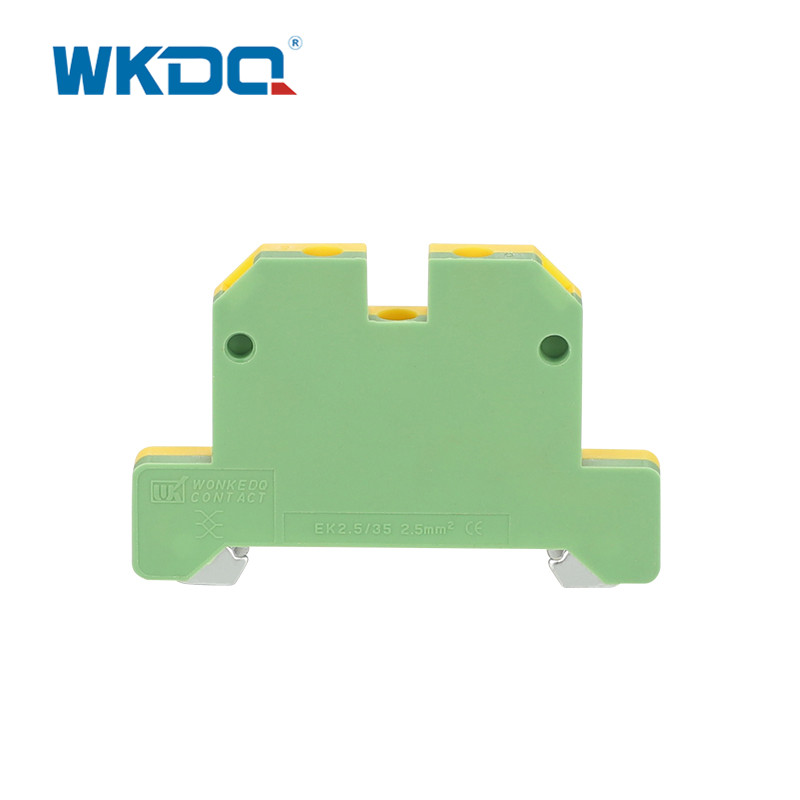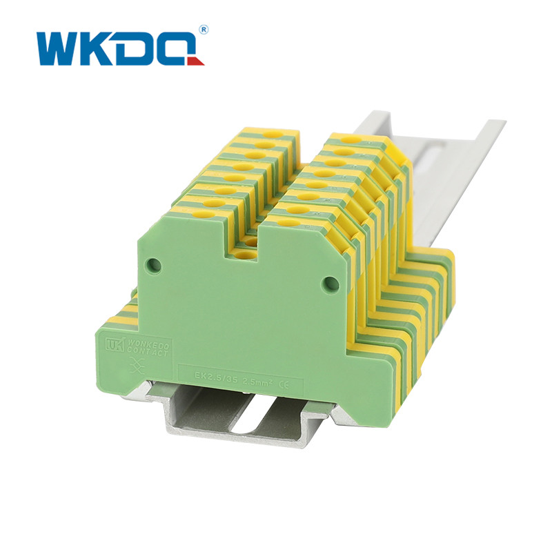 Las carcasas de los bloques de terminales del circuito de tierra están moldeadas con un material en los colores internacionalmente reconocidos de verde y amarillo, que se utilizan para indicar una conexión a tierra.