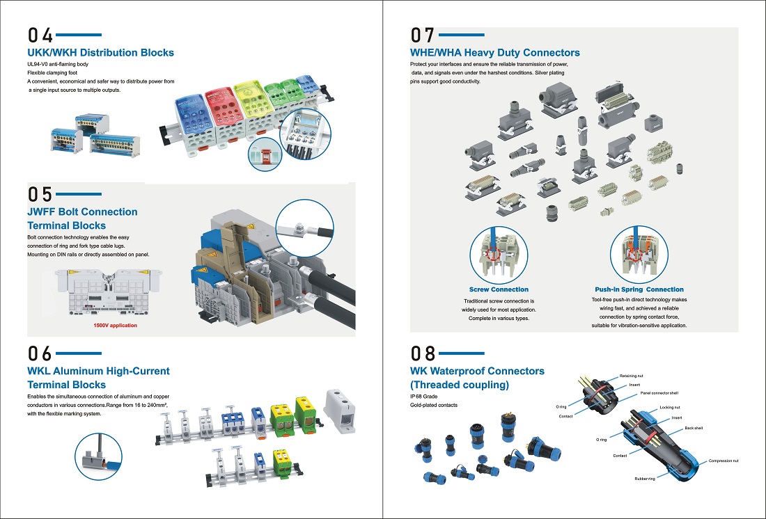 En el stand A14, WKDQ exhibirá ocho series de productos de bloques de terminales, incluidos JUK, JUT, JPT, JPTV, JST, JPTFIX, JPTIO y UKK. Estos productos se adaptan a escenarios como el control industrial, los dispositivos inteligentes y las nuevas energías. Con características como alta confiabilidad, resiliencia ambiental y adaptabilidad flexible, brindamos soluciones de conexión eléctrica de extremo a extremo para clientes globales.