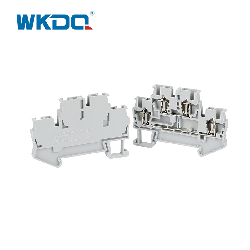 El bloque terminal de resorte multicapa está fabricado de PA66 ignífugo y latón niquelado. Presenta un diseño exclusivo de integración de potencial de doble capa, lo que permite que una sola carcasa acomode múltiples circuitos y ahorre tres veces el espacio de cableado. La operación de engarzado sin herramientas, combinada con una estructura hermética antiaflojamiento y desgasificación, y puntos de contacto resistentes a la corrosión garantizan un suministro de energía estable a largo plazo. La instalación frontal universal en carril DIN de 35 mm y la zona de identificación plana simplifican la gestión. Es compatible con cubiertas finales, puentes enchufables y otros accesorios, cumpliendo con los requisitos de distribución de energía de alta densidad de escenarios compactos.